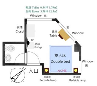 | CommentsComments | ・綺麗で快適なシングルルーム ・共用スペースがあり、キッチンが利用可(浄水器、電子レンジなどあり) ・台湾大学に近く、留学生にお勧め ・近くには数百にも及ぶ飲食店があり、外食も自炊も便利 |