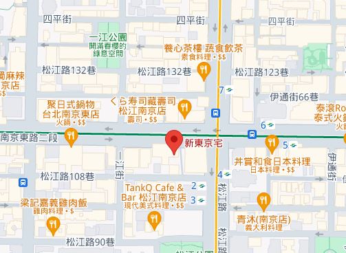 | AdressAdress | 台北市中山區南京東路二段108號6F(18階建て) |