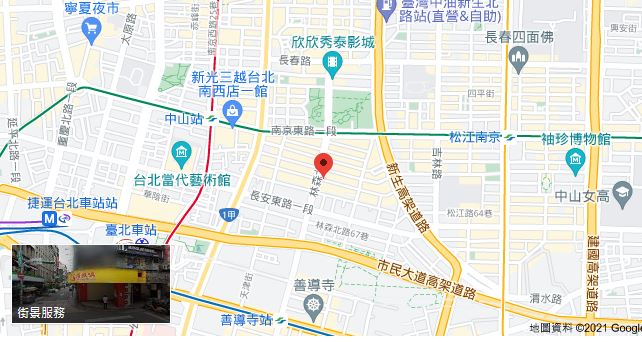 | AdressAdress | 台北市中山區林森北路105號8F |