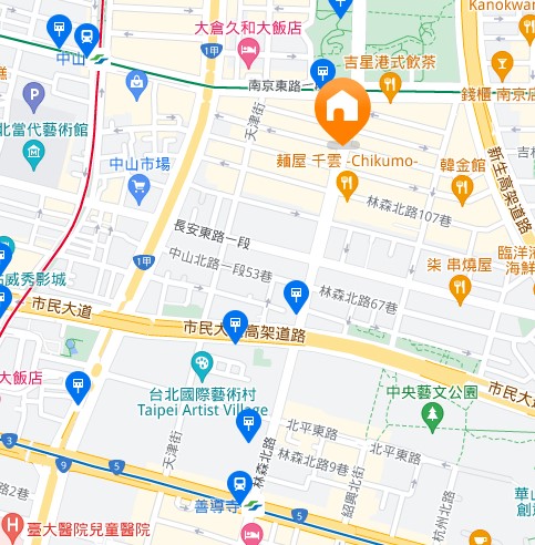 | Nearest stationNearest station | 淡水信義・新店松山線「中山駅」より徒歩8分 |