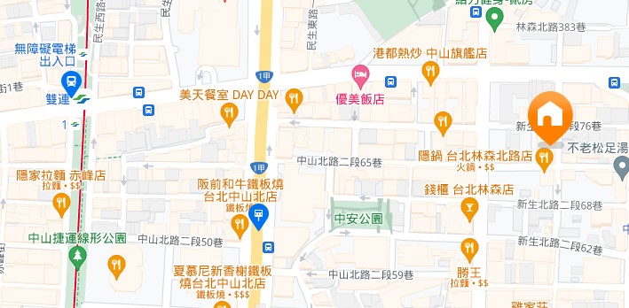 | AdressAdress | 台北市中山區民生東路一段1F(4階建て) |